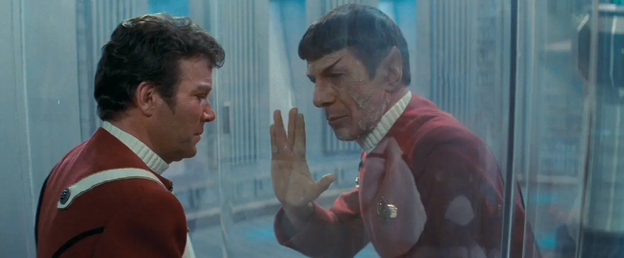 不论在艺术性还是故事性上,ST2对星际迷航世界观乃至整个好莱坞影史都拥有举足轻重的地位,它的贡献不胜枚举,比如巩固了宇宙夫夫在同人CP界祖师爷地位的著名“擦玻璃”一幕: