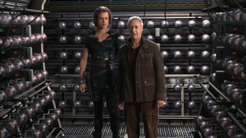 可汗回归电影的首次登场,就俘虏了两名星际舰队星舰的长官。伴随反派的面罩被一点点解开,熟悉前作的老粉为之兴奋,从未看过前作的观众也能够从里卡多·蒙托班出色的表演中感受到这个角色的危险性。随后,可汗和契科夫只用了一段4分钟左右的对话,就给观众提供了前情提要: